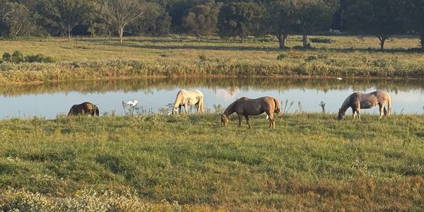 We live on 48 beautiful acres with 4 separate pastures, trees and even a lake! Our home, front & back yard sits on 1 acre and the rest of the land is set up for the horses. On the property we have 3 run in shelters, a shop, large stalls for up to 12 horses, plus we have an awesome round open.